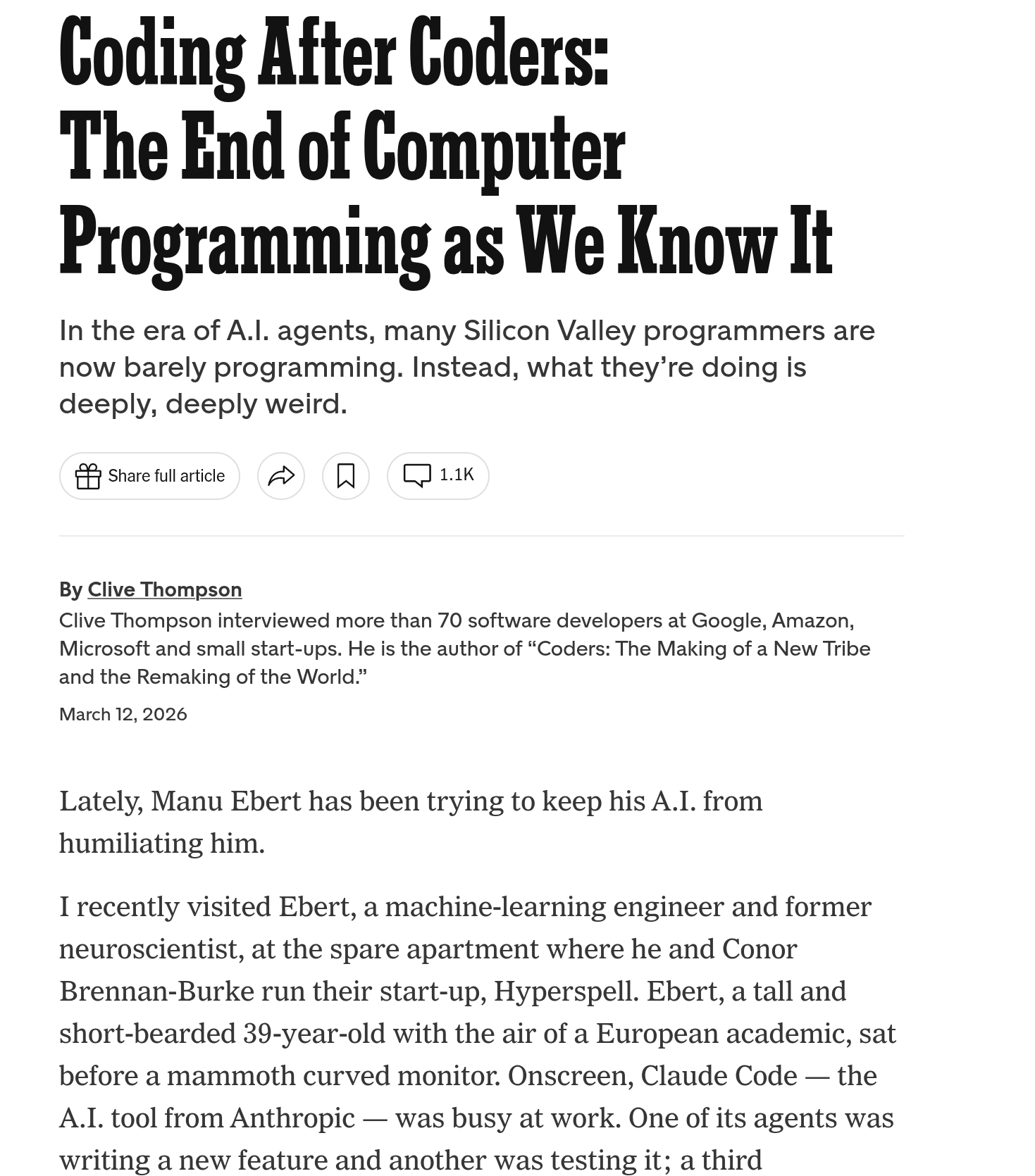 Related is this NYT (… I know…) article, in part because they actually got something right: If you have managed a software department for systems integration delivering to markets that demand liquidated damages for errors, then you may be equipped to “manage” these things. Otherwise you’ll be in a world of hurt.