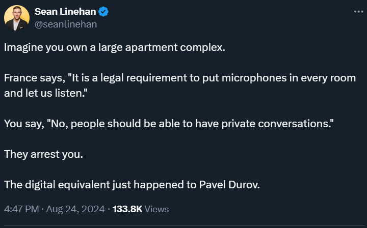However, I am presently considering creating a Telegram account in support of Durov. Beyond telling the French government what I think of them, I doubt I will be an active user. Iām hoping merely enrolling translates into support in some fashion.