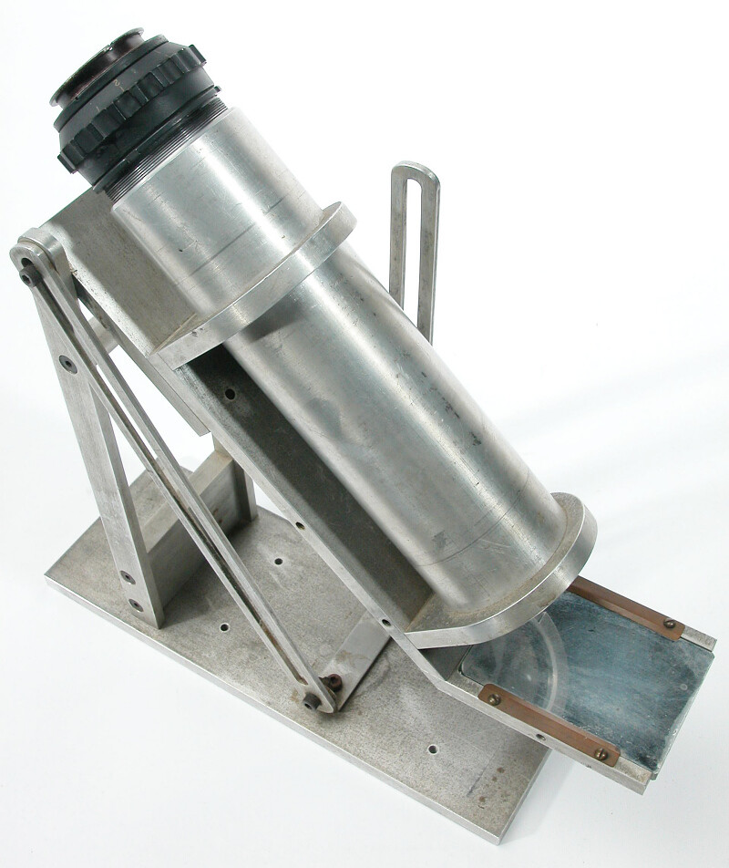 At 13:21, there is a segment on Operation Moonwatch. Yes, at the dawn of the space age, thousands of volunteers working in teams used small telescopes to track the first satellites, providing information about their orbits and the effects of the Earth’s shape and atmospheric drag on their trajectories. Edmund Scientific sold a kit assembled from World War II surplus parts that could be assembled into a “Moonwatch Telescope” which had a mirror to reflect the sky into the objective lens, allowing comfortable viewing with the telescope on a desktop.