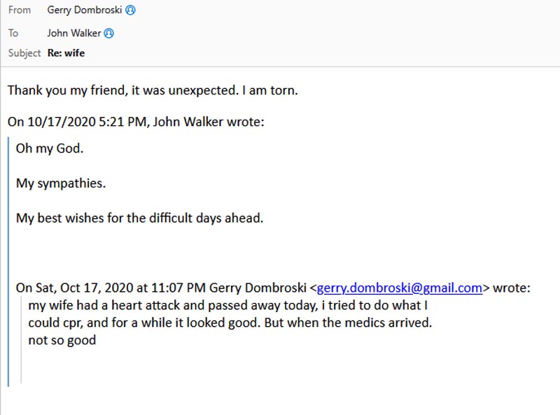 On a personal note, on Friday the 17th it was five years since I lost my wife. She suffered a heart attack. I still suffer.