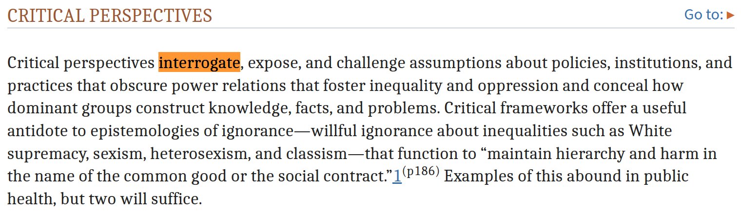 I’ve noticed an increased use of the word “interrogate” and “interrogation” in the social pseudosciences. “Interrogation” has historically been used to describe a powerful person subjecting another to aggressive questioning. A reasonable interpretation is that this increase indicates a sense of entitled power on the part of the social pseudosciences - shifting from mere “questioning” to what they like to call a “power relation” with those “subjected” to their “interrogations”. So when I went looking for an example of the use of this word in recent “scholarship” it was most humorous that this quote was the first to show up. This author has no self-awareness – which is unsurprising since she is from George Washington University, floating in the sea of monetary Fentanyl that flows out of Washington, DC. Pure insolation from any kind of self-awareness is the state of our Serene Highnesses in DC.