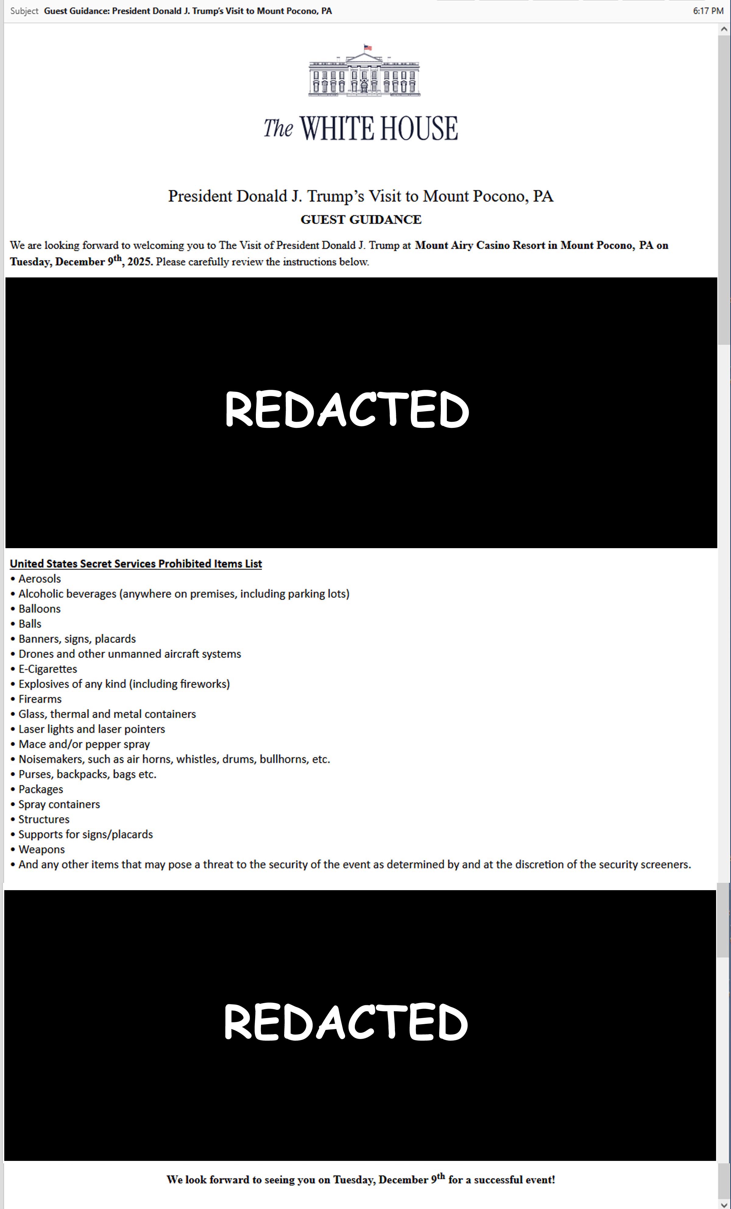 The White House, Guest Guidence